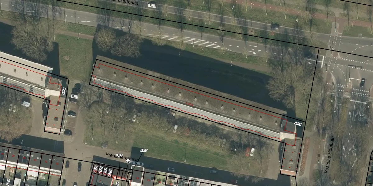 Het perceel waarop Predikherenlaan 115 staat heeft een oppervlakte van 1814 m². Dit is een zeer groot perceel. De perceeloppervlakte wordt geregistreerd door het Kadaster. Gedetailleerde informatie over de maten van dit perceel kunt u vinden in het rapport Kadastrale kaart met maatvoering van Predikherenlaan 115.