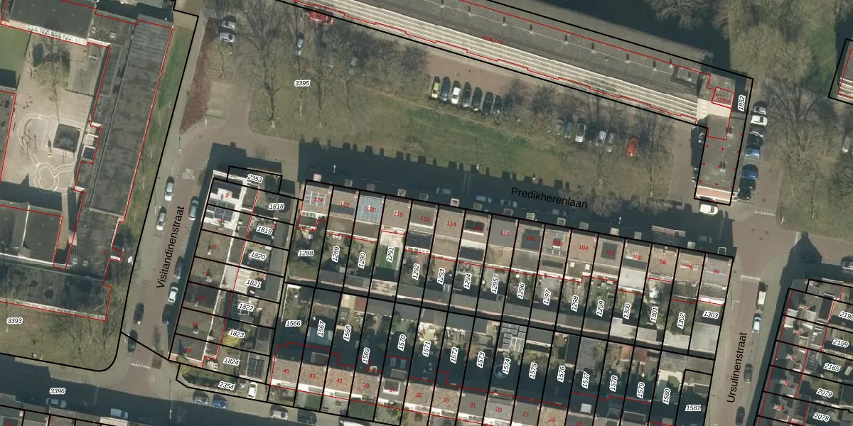 Het perceel waarop Predikherenlaan 116 staat heeft een oppervlakte van 155 m². Dit is een middelgroot perceel. De perceeloppervlakte wordt geregistreerd door het Kadaster. Gedetailleerde informatie over de maten van dit perceel kunt u vinden in het rapport Kadastrale kaart met maatvoering van Predikherenlaan 116.