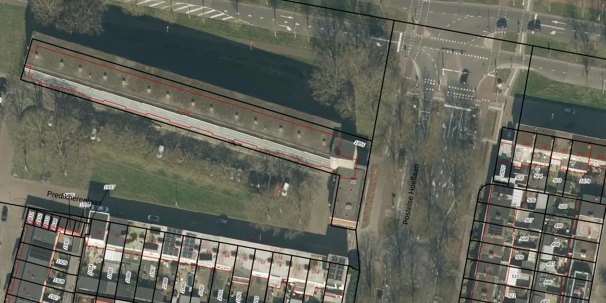 Het perceel waarop Predikherenlaan 19 staat heeft een oppervlakte van 1814 m². Dit is een zeer groot perceel. De perceeloppervlakte wordt geregistreerd door het Kadaster. Gedetailleerde informatie over de maten van dit perceel kunt u vinden in het rapport Kadastrale kaart met maatvoering van Predikherenlaan 19.
