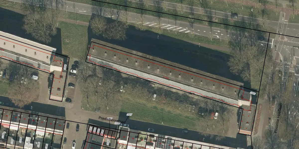 Het perceel waarop Predikherenlaan 33 staat heeft een oppervlakte van 1814 m². Dit is een zeer groot perceel. De perceeloppervlakte wordt geregistreerd door het Kadaster. Gedetailleerde informatie over de maten van dit perceel kunt u vinden in het rapport Kadastrale kaart met maatvoering van Predikherenlaan 33.