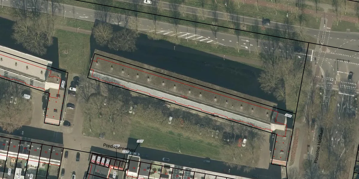 Het perceel waarop Predikherenlaan 87 staat heeft een oppervlakte van 1814 m². Dit is een zeer groot perceel. De perceeloppervlakte wordt geregistreerd door het Kadaster. Gedetailleerde informatie over de maten van dit perceel kunt u vinden in het rapport Kadastrale kaart met maatvoering van Predikherenlaan 87.