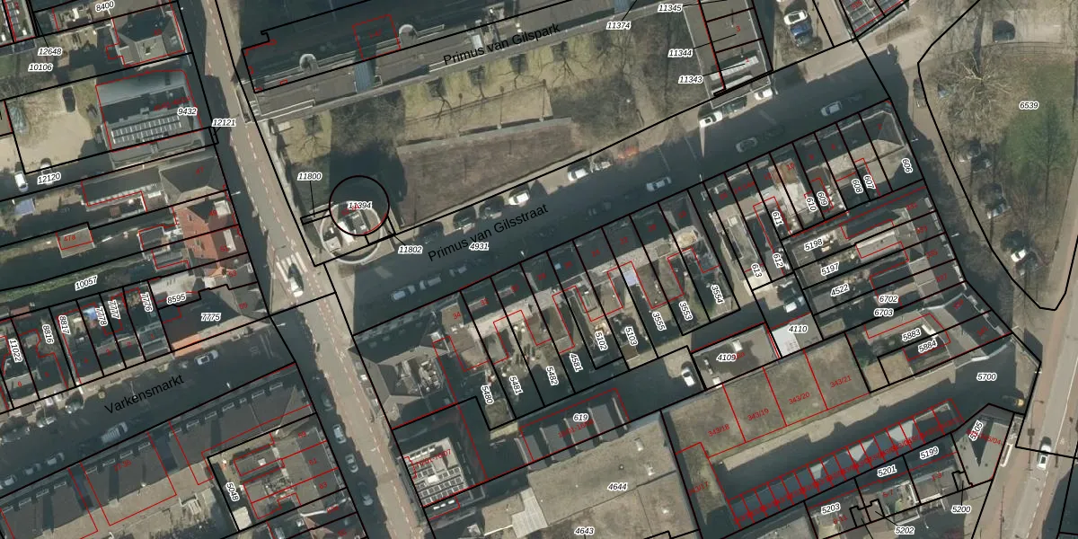 Primus van Gilsstraat 28 is gelegen op kadastraal perceel TBG01R4581. Deze kadastrale aanduiding is uniek en wordt gebruikt door het Kadaster om eigendomsrechten en andere zakelijke rechten vast te leggen. Het perceel maakt onderdeel uit van de kadastrale gemeente Tilburg.