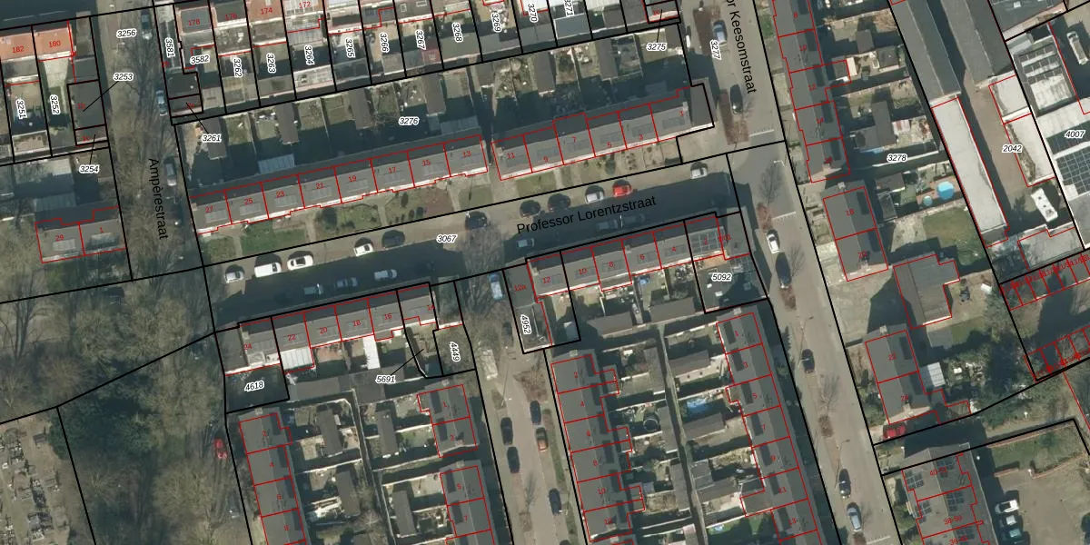 Professor Lorentzstraat 12 is gelegen op kadastraal perceel TBG01R4952. Deze kadastrale aanduiding is uniek en wordt gebruikt door het Kadaster om eigendomsrechten en andere zakelijke rechten vast te leggen. Het perceel maakt onderdeel uit van de kadastrale gemeente Tilburg.