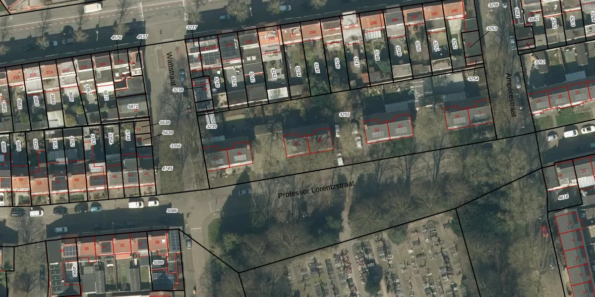 Professor Lorentzstraat 37 is gelegen op kadastraal perceel TBG01R3255. Deze kadastrale aanduiding is uniek en wordt gebruikt door het Kadaster om eigendomsrechten en andere zakelijke rechten vast te leggen. Het perceel maakt onderdeel uit van de kadastrale gemeente Tilburg.