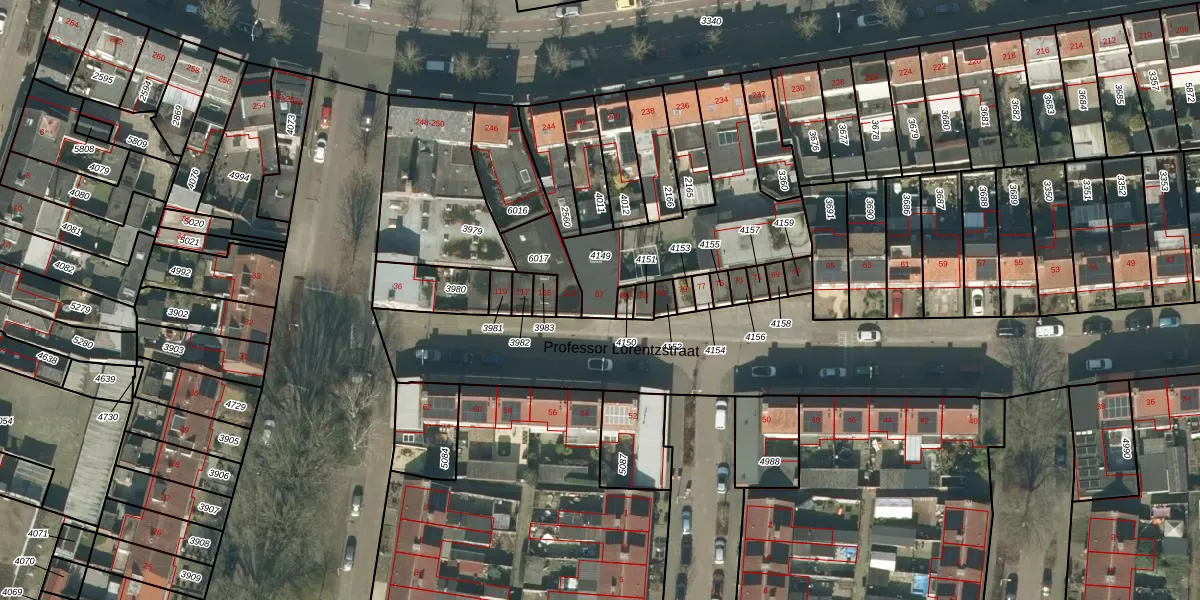 Het perceel waarop Professor Lorentzstraat 87 staat heeft een oppervlakte van 606 m². Dit is een groot perceel. De perceeloppervlakte wordt geregistreerd door het Kadaster. Gedetailleerde informatie over de maten van dit perceel kunt u vinden in het rapport Kadastrale kaart met maatvoering van Professor Lorentzstraat 87.