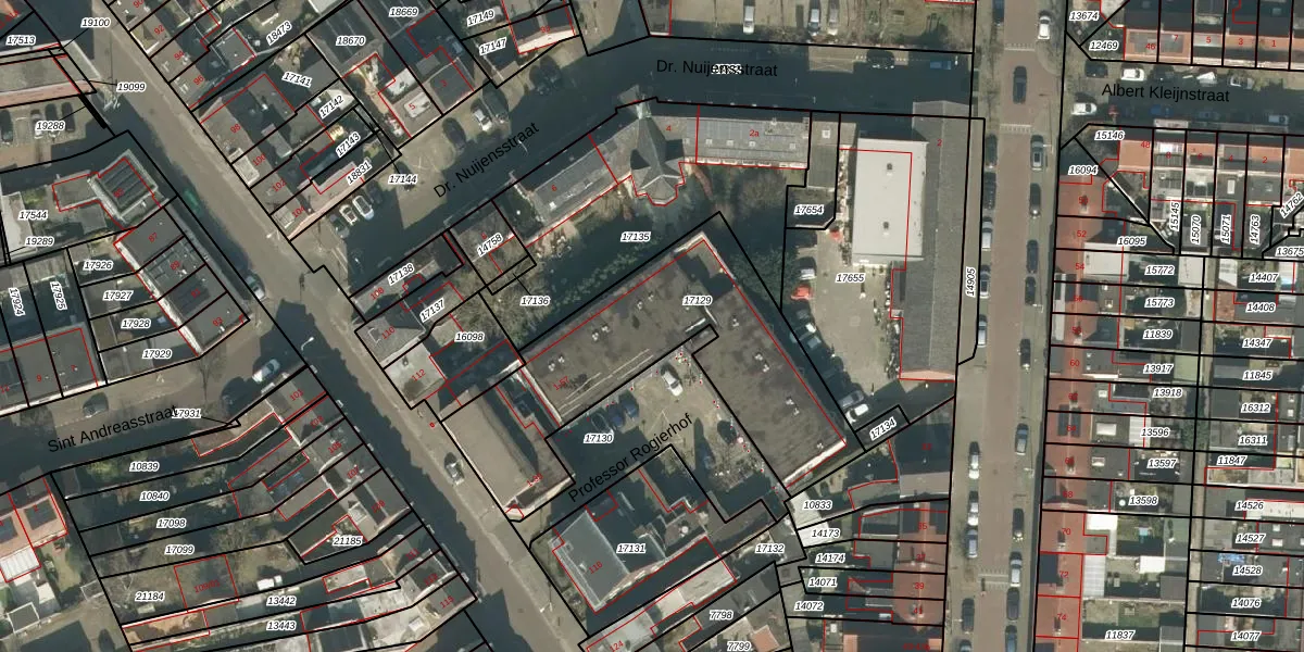 Het perceel waarop Professor Rogierhof 31 staat heeft een oppervlakte van 1178 m². Dit is een zeer groot perceel. De perceeloppervlakte wordt geregistreerd door het Kadaster. Gedetailleerde informatie over de maten van dit perceel kunt u vinden in het rapport Kadastrale kaart met maatvoering van Professor Rogierhof 31.