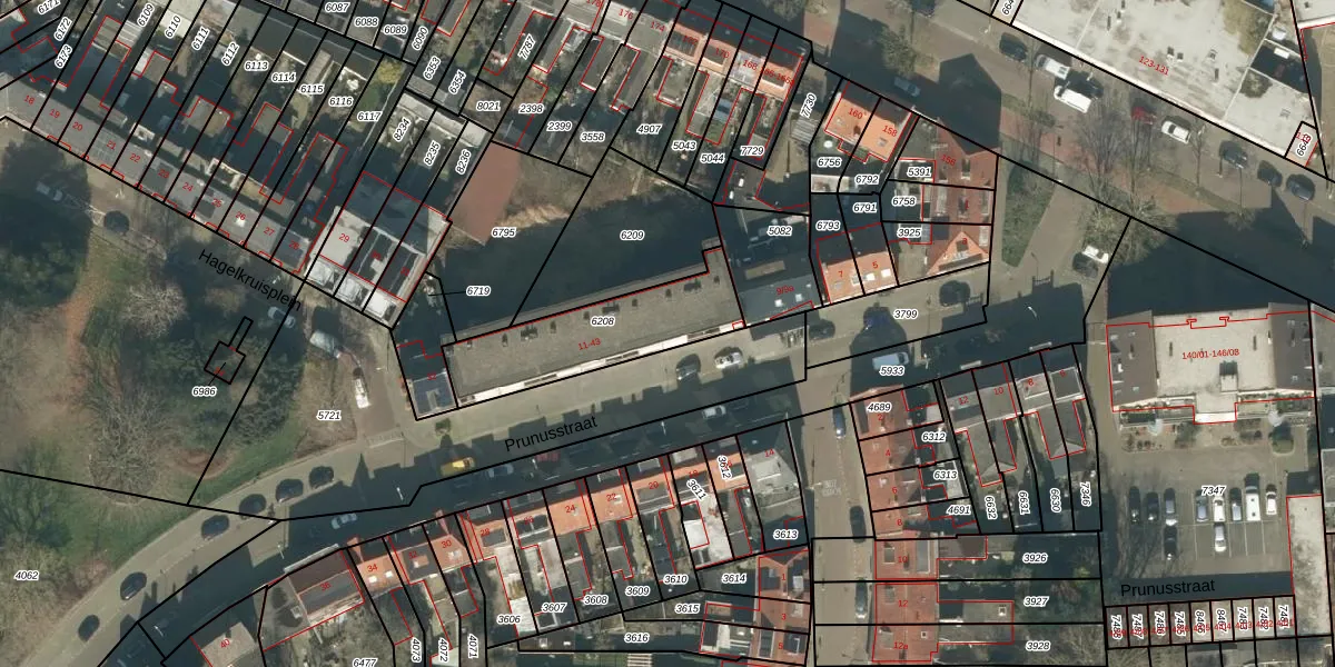 Prunusstraat 13 is gelegen op kadastraal perceel TBG01P6208. Deze kadastrale aanduiding is uniek en wordt gebruikt door het Kadaster om eigendomsrechten en andere zakelijke rechten vast te leggen. Het perceel maakt onderdeel uit van de kadastrale gemeente Tilburg.