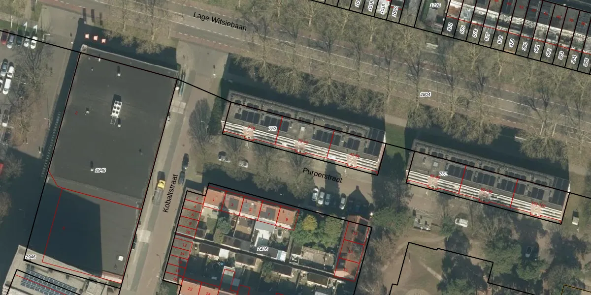 Het perceel waarop Purperstraat 24 staat heeft een oppervlakte van 606 m². Dit is een groot perceel. De perceeloppervlakte wordt geregistreerd door het Kadaster. Gedetailleerde informatie over de maten van dit perceel kunt u vinden in het rapport Kadastrale kaart met maatvoering van Purperstraat 24.