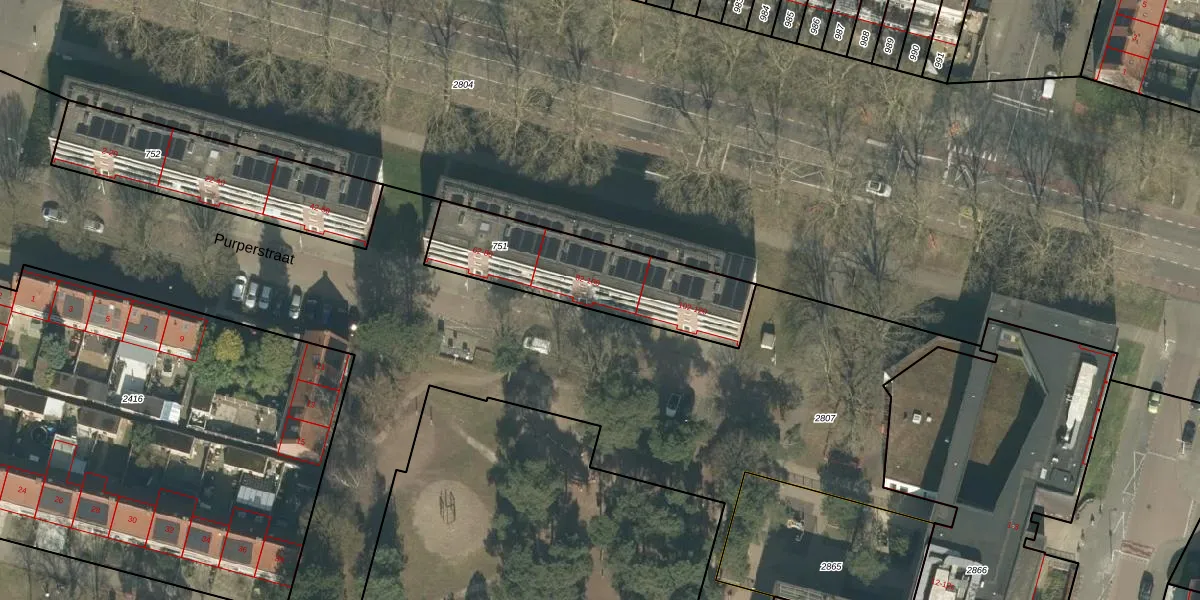 Het perceel waarop Purperstraat 98 staat heeft een oppervlakte van 606 m². Dit is een groot perceel. De perceeloppervlakte wordt geregistreerd door het Kadaster. Gedetailleerde informatie over de maten van dit perceel kunt u vinden in het rapport Kadastrale kaart met maatvoering van Purperstraat 98.
