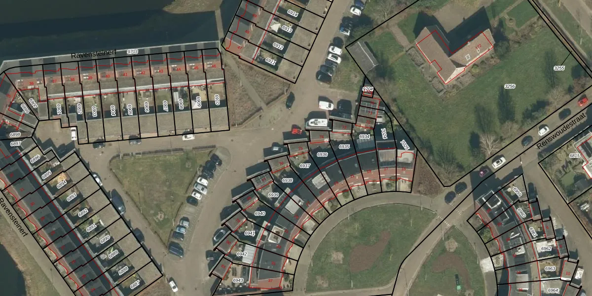Het perceel waarop Ravensteinerf 75 staat heeft een oppervlakte van 173 m². Dit is een middelgroot perceel. De perceeloppervlakte wordt geregistreerd door het Kadaster. Gedetailleerde informatie over de maten van dit perceel kunt u vinden in het rapport Kadastrale kaart met maatvoering van Ravensteinerf 75.