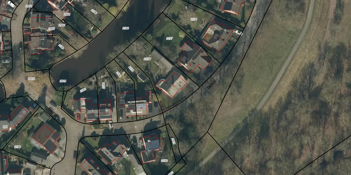 Het perceel waarop Reest 24 staat heeft een oppervlakte van 769 m². Dit is een groot perceel. De perceeloppervlakte wordt geregistreerd door het Kadaster. Gedetailleerde informatie over de maten van dit perceel kunt u vinden in het rapport Kadastrale kaart met maatvoering van Reest 24.