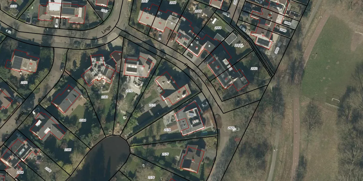 Het perceel waarop Reest 34 staat heeft een oppervlakte van 811 m². Dit is een groot perceel. De perceeloppervlakte wordt geregistreerd door het Kadaster. Gedetailleerde informatie over de maten van dit perceel kunt u vinden in het rapport Kadastrale kaart met maatvoering van Reest 34.