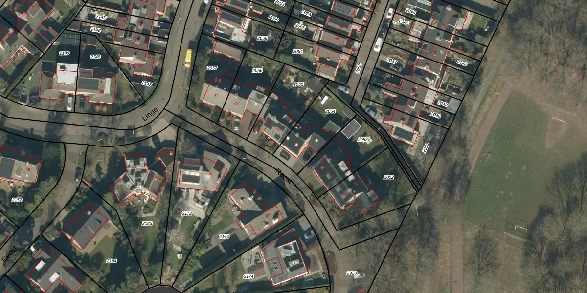 Het perceel waarop Reest 41 staat heeft een oppervlakte van 365 m². Dit is een groot perceel. De perceeloppervlakte wordt geregistreerd door het Kadaster. Gedetailleerde informatie over de maten van dit perceel kunt u vinden in het rapport Kadastrale kaart met maatvoering van Reest 41.