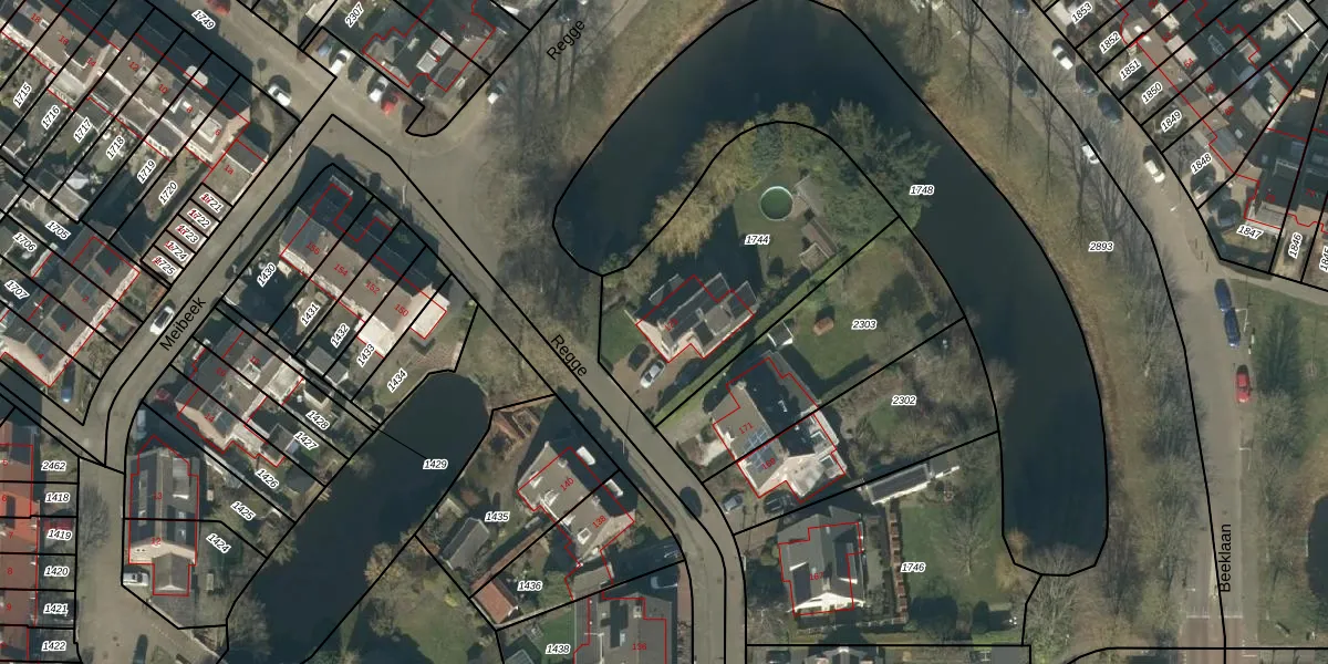 Het perceel waarop Regge 173 staat heeft een oppervlakte van 1061 m². Dit is een zeer groot perceel. De perceeloppervlakte wordt geregistreerd door het Kadaster. Gedetailleerde informatie over de maten van dit perceel kunt u vinden in het rapport Kadastrale kaart met maatvoering van Regge 173.