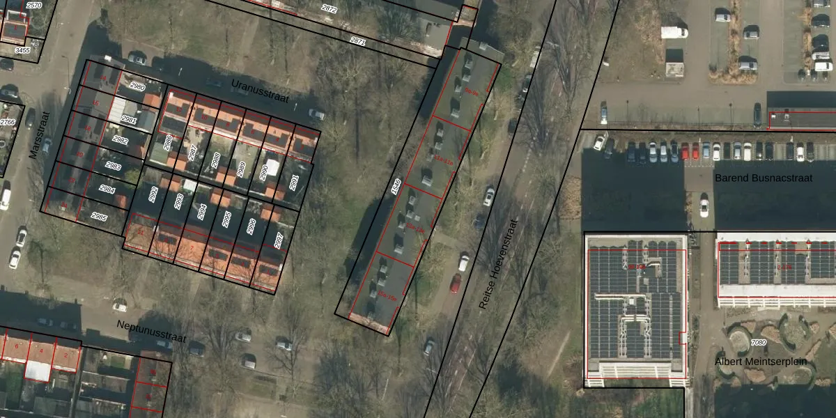 Het perceel waarop Reitse Hoevenstraat 13-b staat heeft een oppervlakte van 987 m². Dit is een groot perceel. De perceeloppervlakte wordt geregistreerd door het Kadaster. Gedetailleerde informatie over de maten van dit perceel kunt u vinden in het rapport Kadastrale kaart met maatvoering van Reitse Hoevenstraat 13-b.