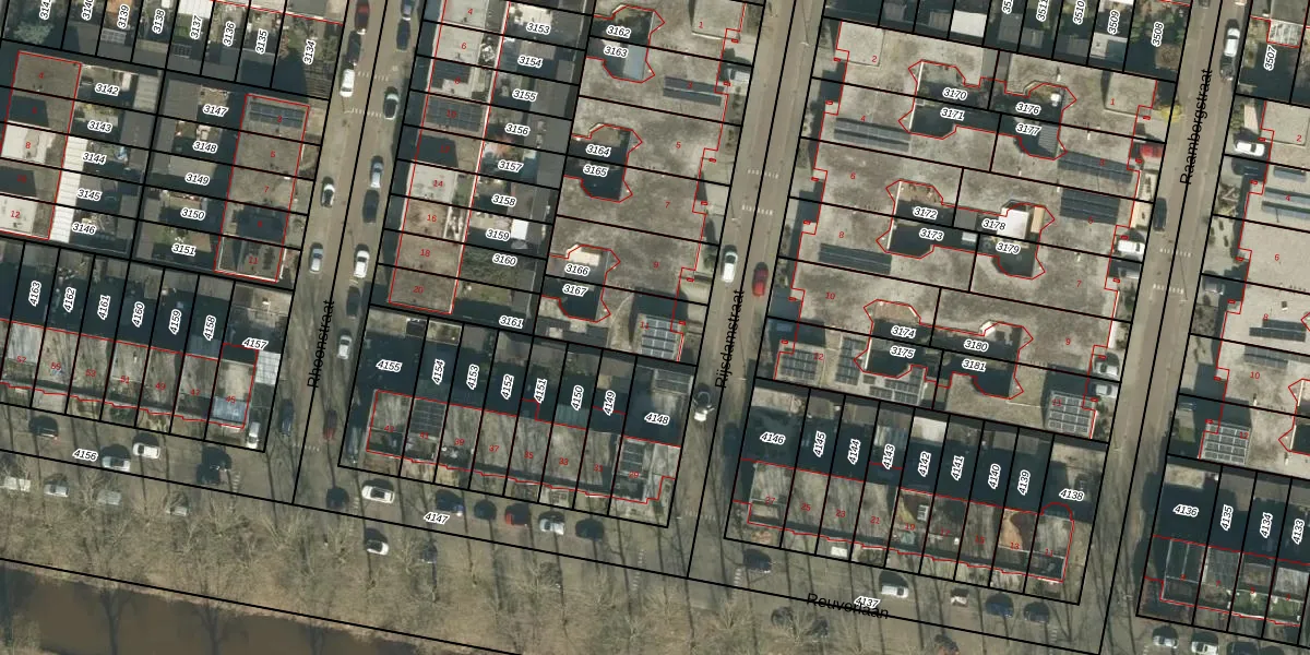 Het perceel waarop Rijsdamstraat 11 staat heeft een oppervlakte van 241 m². Dit is een middelgroot perceel. De perceeloppervlakte wordt geregistreerd door het Kadaster. Gedetailleerde informatie over de maten van dit perceel kunt u vinden in het rapport Kadastrale kaart met maatvoering van Rijsdamstraat 11.