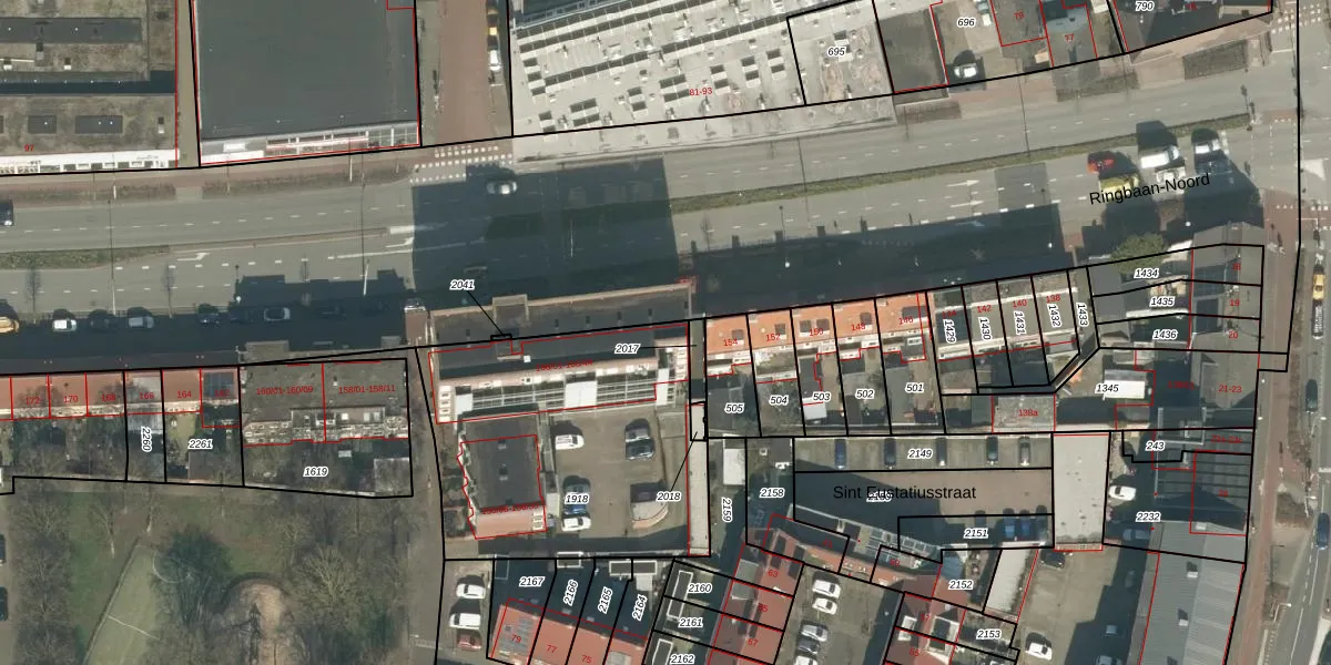Ringbaan-Noord 156-01 is gelegen op kadastraal perceel TBG01T1918. Deze kadastrale aanduiding is uniek en wordt gebruikt door het Kadaster om eigendomsrechten en andere zakelijke rechten vast te leggen. Het perceel maakt onderdeel uit van de kadastrale gemeente Tilburg.