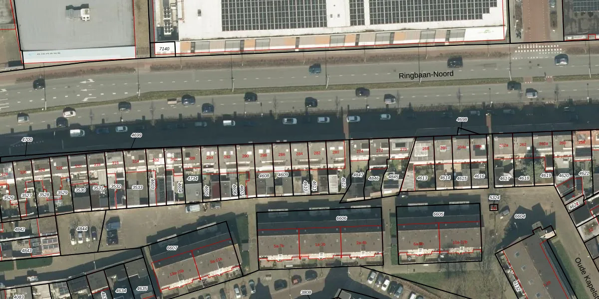 Ringbaan-Noord 284 is gelegen op kadastraal perceel TBG01O4610. Deze kadastrale aanduiding is uniek en wordt gebruikt door het Kadaster om eigendomsrechten en andere zakelijke rechten vast te leggen. Het perceel maakt onderdeel uit van de kadastrale gemeente Tilburg.