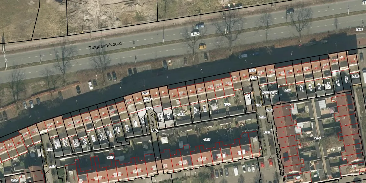 Ringbaan-Noord 412 is gelegen op kadastraal perceel TBG01O5919. Deze kadastrale aanduiding is uniek en wordt gebruikt door het Kadaster om eigendomsrechten en andere zakelijke rechten vast te leggen. Het perceel maakt onderdeel uit van de kadastrale gemeente Tilburg.