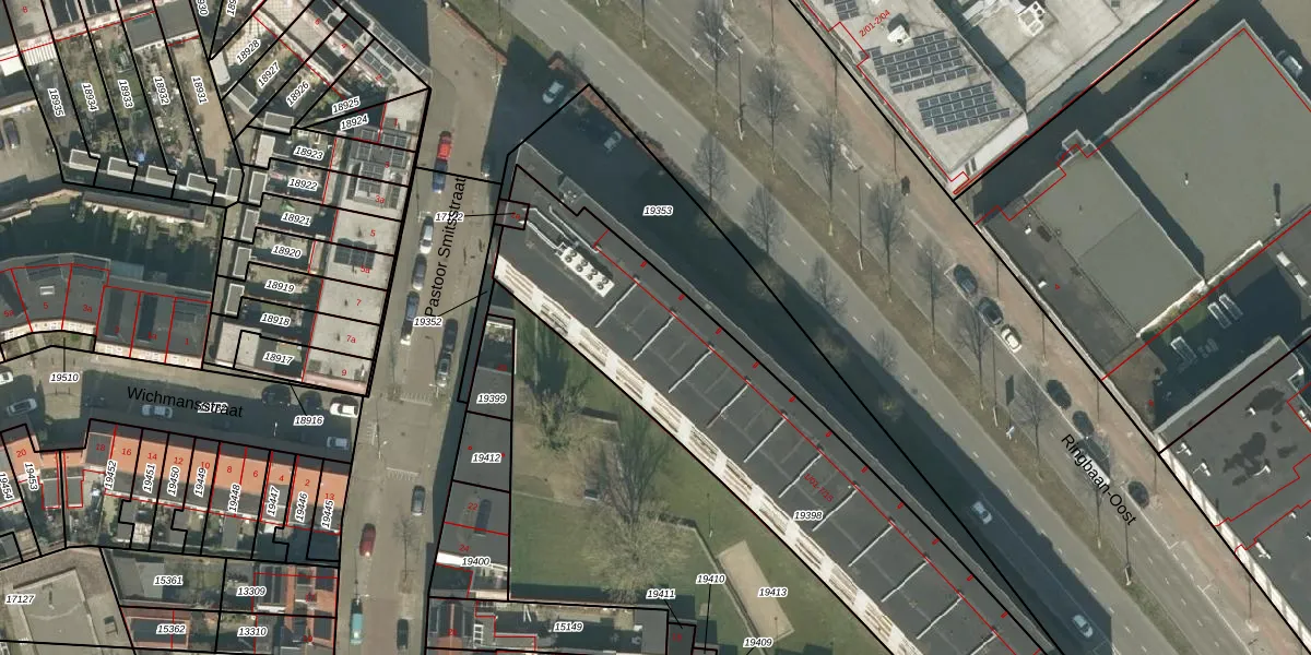 Ringbaan-Oost 1-04 is gelegen op kadastraal perceel TBG01N19398. Deze kadastrale aanduiding is uniek en wordt gebruikt door het Kadaster om eigendomsrechten en andere zakelijke rechten vast te leggen. Het perceel maakt onderdeel uit van de kadastrale gemeente Tilburg.