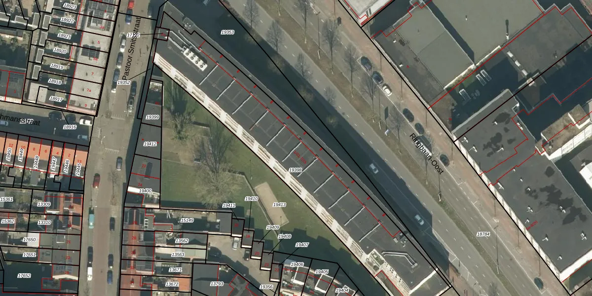Ringbaan-Oost 1-08 is gelegen op kadastraal perceel TBG01N19398. Deze kadastrale aanduiding is uniek en wordt gebruikt door het Kadaster om eigendomsrechten en andere zakelijke rechten vast te leggen. Het perceel maakt onderdeel uit van de kadastrale gemeente Tilburg.