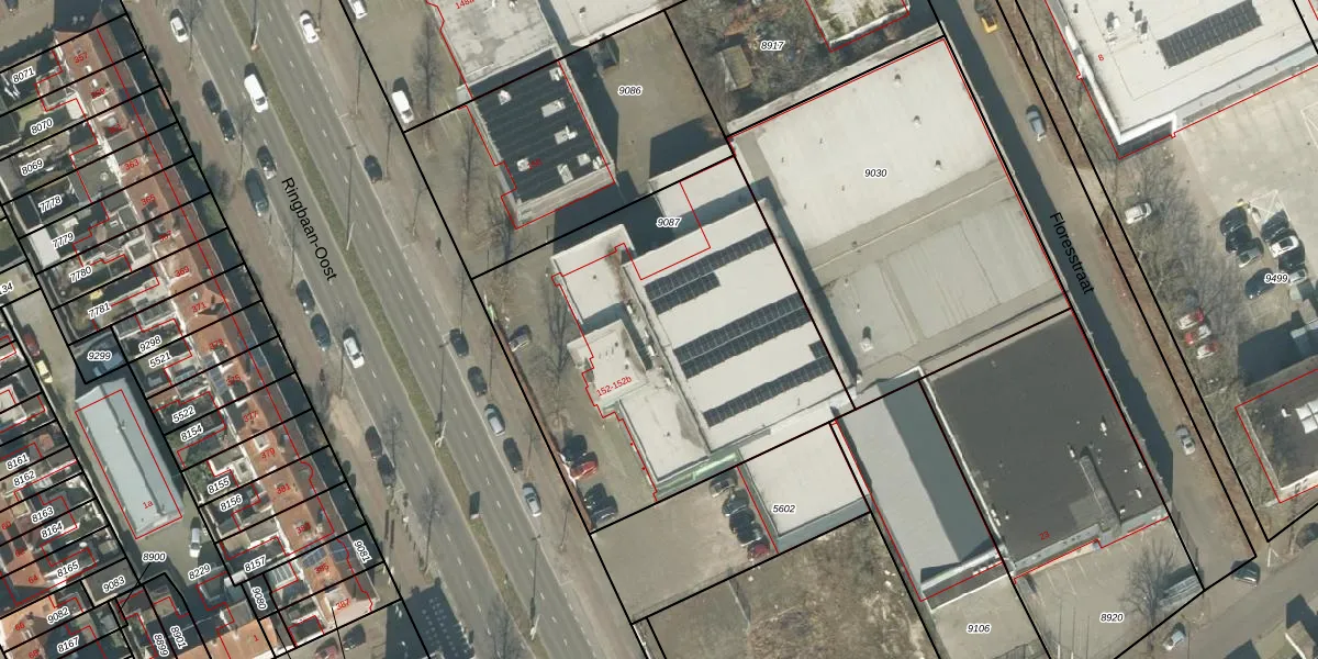 Ringbaan-Oost 152-a is gelegen op kadastraal perceel TBG01B9087. Deze kadastrale aanduiding is uniek en wordt gebruikt door het Kadaster om eigendomsrechten en andere zakelijke rechten vast te leggen. Het perceel maakt onderdeel uit van de kadastrale gemeente Tilburg.