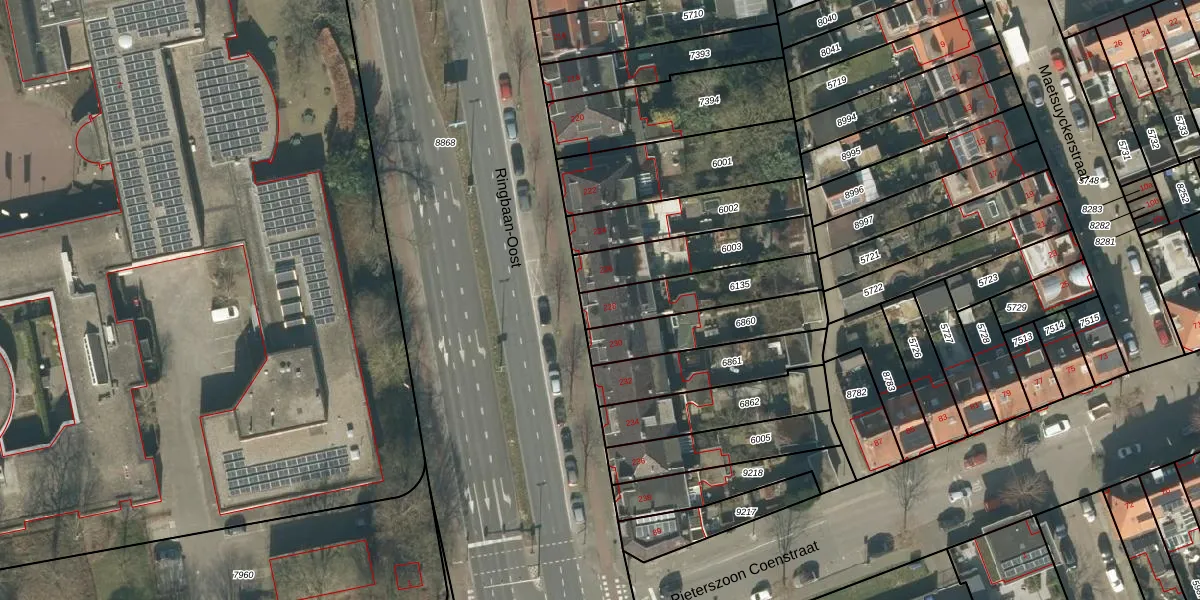 Gebruik de zoekbalk of klik op een perceel voor informatie over de adressen binnen dit perceel.