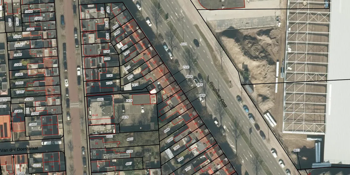 Ringbaan-Oost 233 is gelegen op kadastraal perceel TBG01B6804. Deze kadastrale aanduiding is uniek en wordt gebruikt door het Kadaster om eigendomsrechten en andere zakelijke rechten vast te leggen. Het perceel maakt onderdeel uit van de kadastrale gemeente Tilburg.