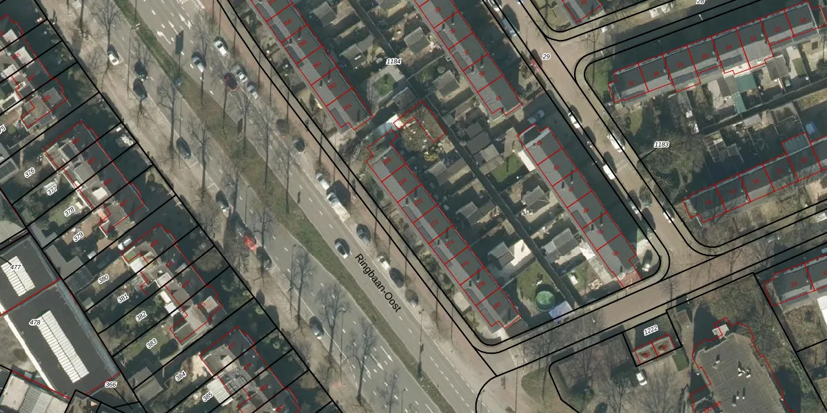 Het perceel waarop Ringbaan-Oost 270 staat heeft een oppervlakte van 7375 m². Dit is een zeer groot perceel. De perceeloppervlakte wordt geregistreerd door het Kadaster. Gedetailleerde informatie over de maten van dit perceel kunt u vinden in het rapport Kadastrale kaart met maatvoering van Ringbaan-Oost 270.