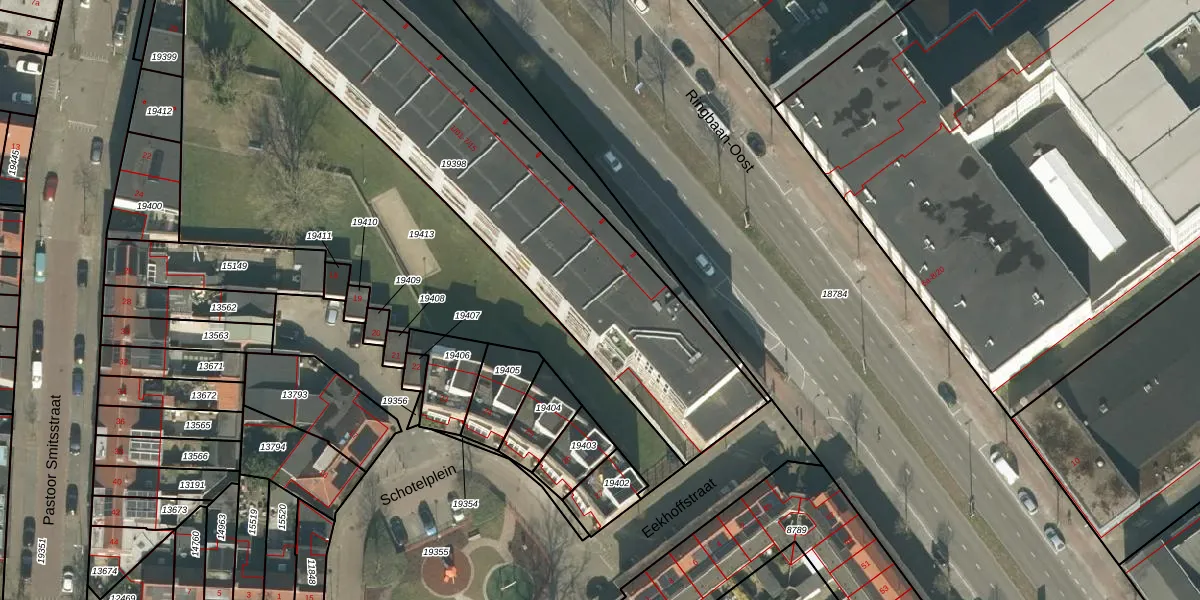 Ringbaan-Oost 3-13 is gelegen op kadastraal perceel TBG01N19398. Deze kadastrale aanduiding is uniek en wordt gebruikt door het Kadaster om eigendomsrechten en andere zakelijke rechten vast te leggen. Het perceel maakt onderdeel uit van de kadastrale gemeente Tilburg.