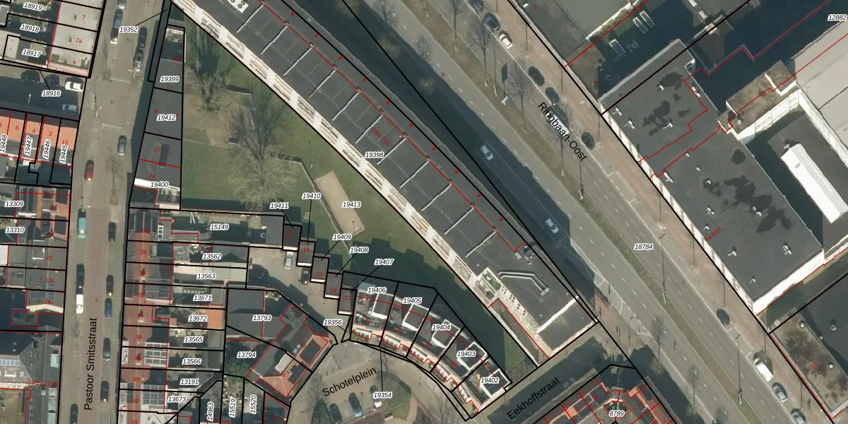 Ringbaan-Oost 5-11 is gelegen op kadastraal perceel TBG01N19398. Deze kadastrale aanduiding is uniek en wordt gebruikt door het Kadaster om eigendomsrechten en andere zakelijke rechten vast te leggen. Het perceel maakt onderdeel uit van de kadastrale gemeente Tilburg.