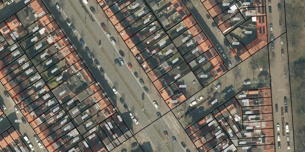 Het perceel waarop Ringbaan-Oost 60 staat heeft een oppervlakte van 184 m². Dit is een middelgroot perceel. De perceeloppervlakte wordt geregistreerd door het Kadaster. Gedetailleerde informatie over de maten van dit perceel kunt u vinden in het rapport Kadastrale kaart met maatvoering van Ringbaan-Oost 60.
