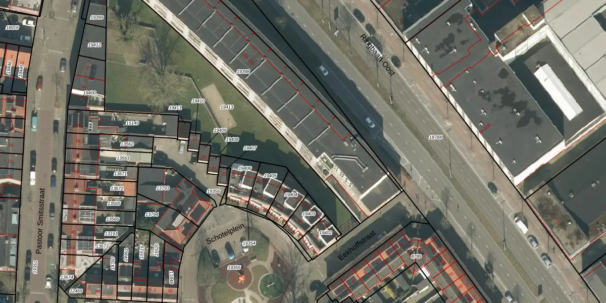 Ringbaan-Oost 7-13 is gelegen op kadastraal perceel TBG01N19398. Deze kadastrale aanduiding is uniek en wordt gebruikt door het Kadaster om eigendomsrechten en andere zakelijke rechten vast te leggen. Het perceel maakt onderdeel uit van de kadastrale gemeente Tilburg.