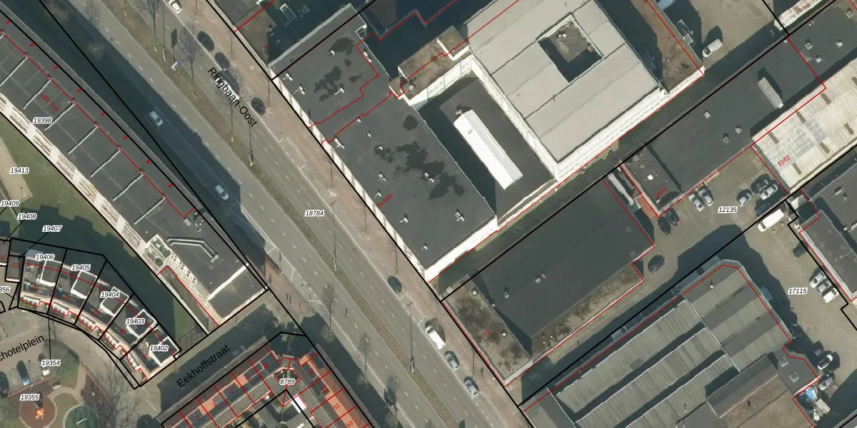 Het perceel waarop Ringbaan-Oost 8-16 staat heeft een oppervlakte van 6730 m². Dit is een zeer groot perceel. De perceeloppervlakte wordt geregistreerd door het Kadaster. Gedetailleerde informatie over de maten van dit perceel kunt u vinden in het rapport Kadastrale kaart met maatvoering van Ringbaan-Oost 8-16.