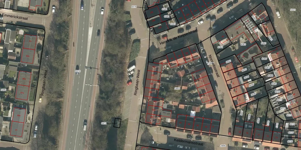 Het perceel waarop het adres ligt is TBG01-O-2843. De afkorting 'TBG01' staat voor kadastrale gemeente Tilburg. Het perceel is met 2310 m² relatief groot. Het gemiddelde ligt in de kadastrale gemeente Tilburg op 1265 m². De grootste perceeloppervlakte in de kadastrale gemeente is 87,4 ha. De kleinste oppervlakte bedraagt 0 m². Op het perceel liggen in totaal 21 adressen. In de Basisregistratie Kadaster (BRK) werden de grenzen van het perceel geregistreerd op 21-01-2010.