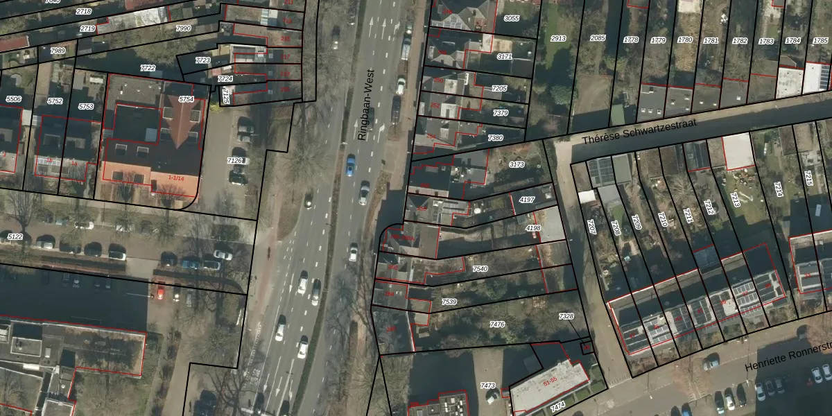 Ringbaan-West 258 is gelegen op kadastraal perceel TBG01P4197. Deze kadastrale aanduiding is uniek en wordt gebruikt door het Kadaster om eigendomsrechten en andere zakelijke rechten vast te leggen. Het perceel maakt onderdeel uit van de kadastrale gemeente Tilburg.