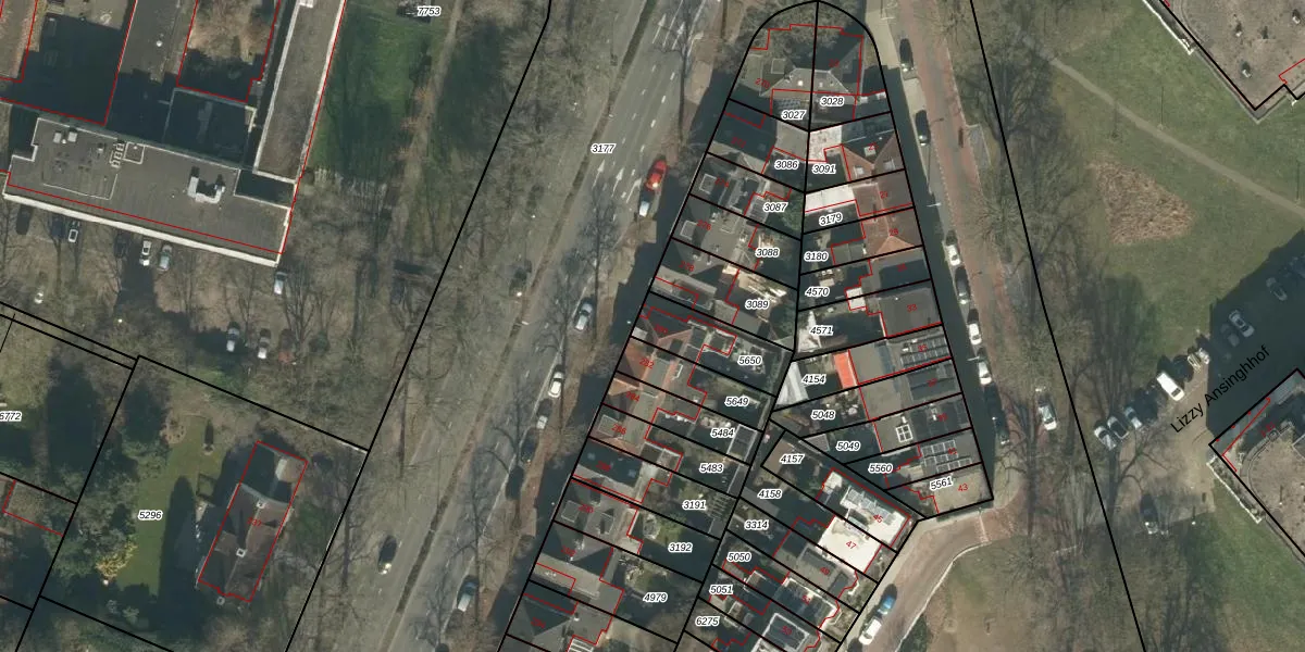 Gebruik de zoekbalk of klik op een perceel voor informatie over de adressen binnen dit perceel.