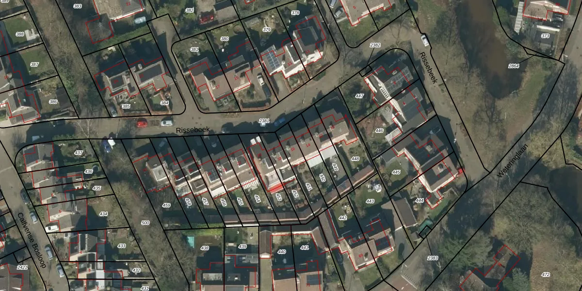 Het perceel waarop Rissebeek 16 staat heeft een oppervlakte van 175 m². Dit is een middelgroot perceel. De perceeloppervlakte wordt geregistreerd door het Kadaster. Gedetailleerde informatie over de maten van dit perceel kunt u vinden in het rapport Kadastrale kaart met maatvoering van Rissebeek 16.