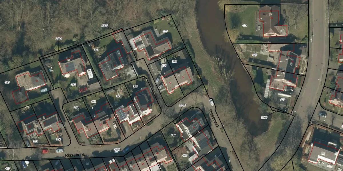 Rissebeek 5 is gelegen op kadastraal perceel TBG01AA374. Deze kadastrale aanduiding is uniek en wordt gebruikt door het Kadaster om eigendomsrechten en andere zakelijke rechten vast te leggen. Het perceel maakt onderdeel uit van de kadastrale gemeente Tilburg.