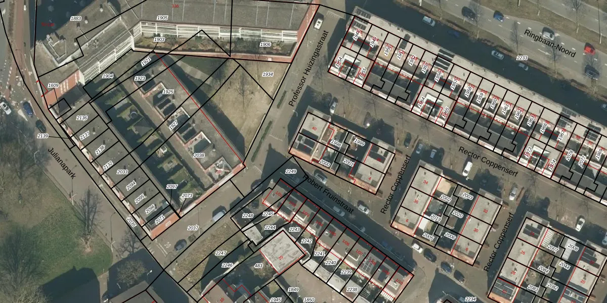 Robert Fruinstraat 2 is gelegen op kadastraal perceel TBG01T2000. Deze kadastrale aanduiding is uniek en wordt gebruikt door het Kadaster om eigendomsrechten en andere zakelijke rechten vast te leggen. Het perceel maakt onderdeel uit van de kadastrale gemeente Tilburg.