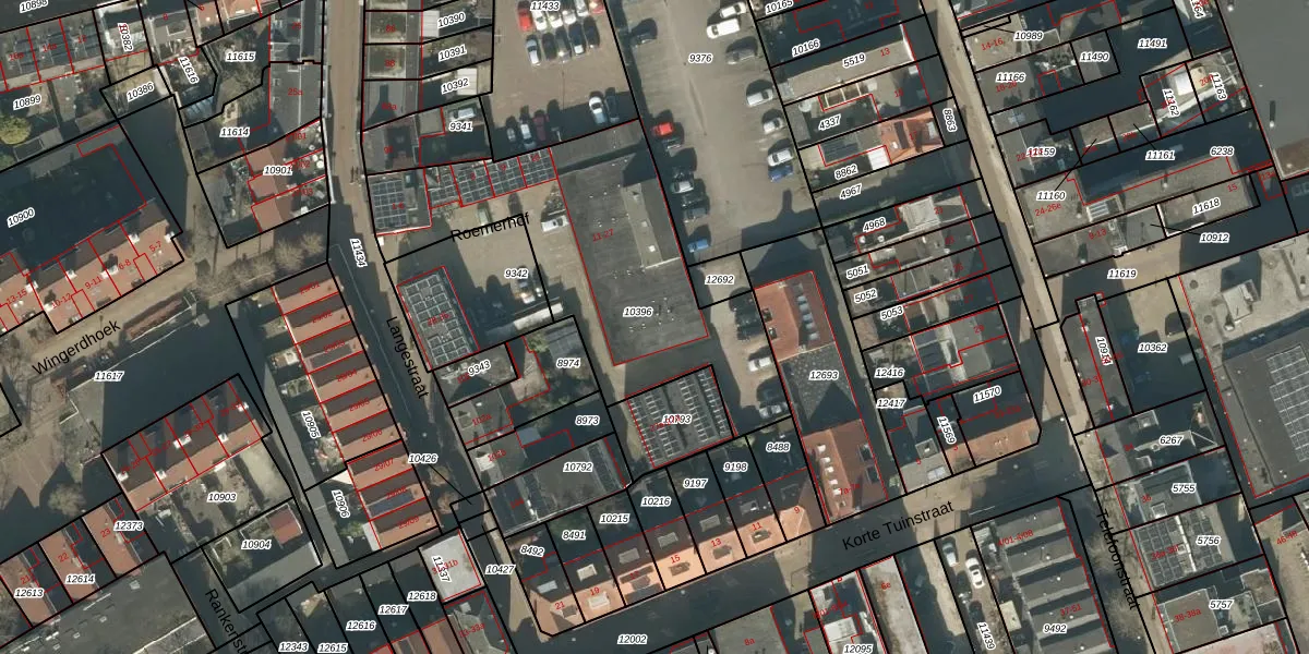 Roemerhof 12-15 is gelegen op kadastraal perceel TBG01M10396. Deze kadastrale aanduiding is uniek en wordt gebruikt door het Kadaster om eigendomsrechten en andere zakelijke rechten vast te leggen. Het perceel maakt onderdeel uit van de kadastrale gemeente Tilburg.
