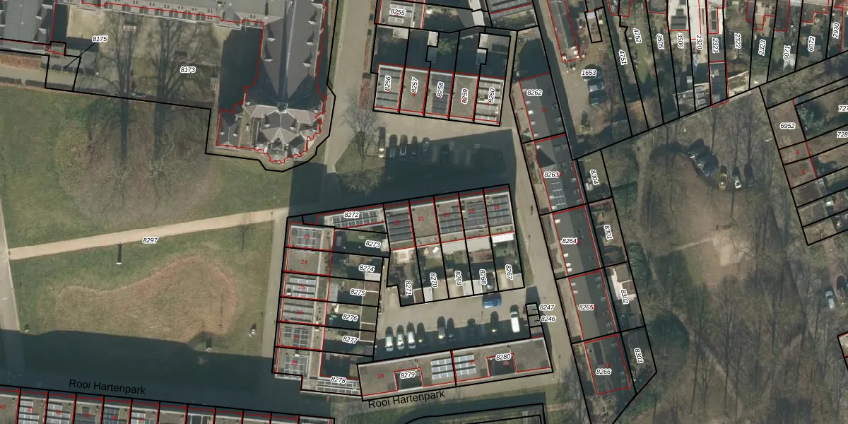 Rooi Hartenpark 21 is gelegen op kadastraal perceel TBG01P8270. Deze kadastrale aanduiding is uniek en wordt gebruikt door het Kadaster om eigendomsrechten en andere zakelijke rechten vast te leggen. Het perceel maakt onderdeel uit van de kadastrale gemeente Tilburg.