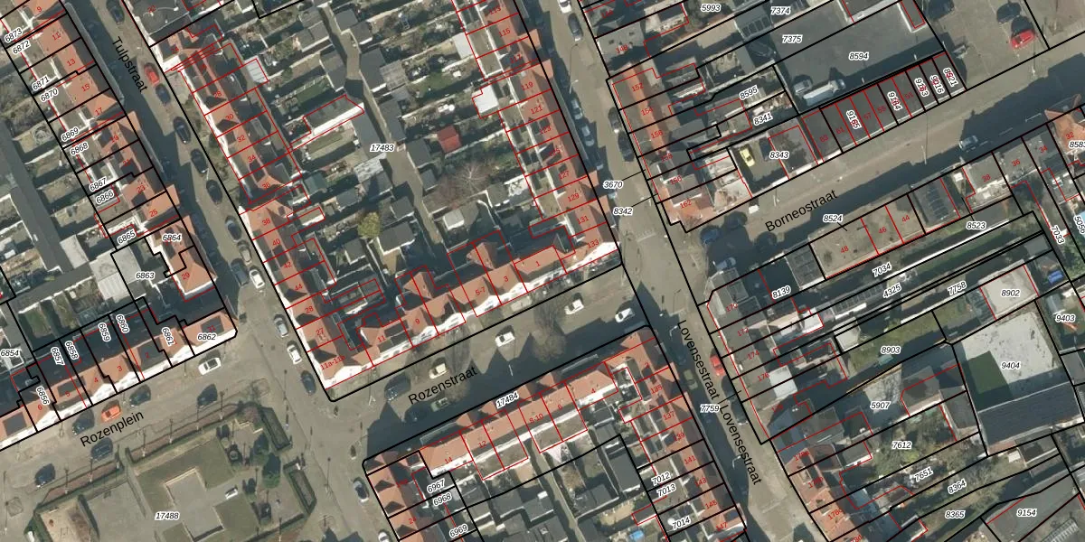 Het perceel waarop Rozenstraat 1 staat heeft een oppervlakte van 4392 m². Dit is een zeer groot perceel. De perceeloppervlakte wordt geregistreerd door het Kadaster. Gedetailleerde informatie over de maten van dit perceel kunt u vinden in het rapport Kadastrale kaart met maatvoering van Rozenstraat 1.