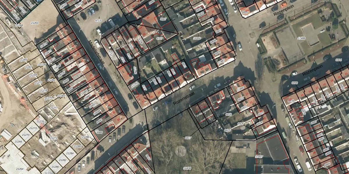 Het perceel waarop Rozenstraat 19 staat heeft een oppervlakte van 65 m². Dit is een klein perceel. De perceeloppervlakte wordt geregistreerd door het Kadaster. Gedetailleerde informatie over de maten van dit perceel kunt u vinden in het rapport Kadastrale kaart met maatvoering van Rozenstraat 19.