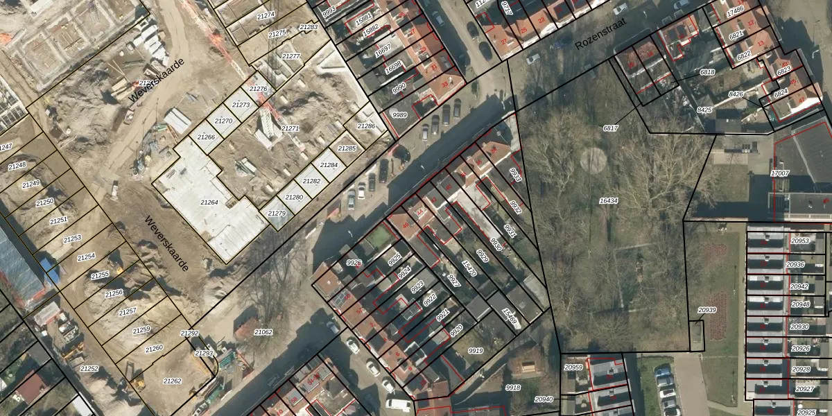 Rozenstraat 44 is gelegen op kadastraal perceel TBG01N15470. Deze kadastrale aanduiding is uniek en wordt gebruikt door het Kadaster om eigendomsrechten en andere zakelijke rechten vast te leggen. Het perceel maakt onderdeel uit van de kadastrale gemeente Tilburg.