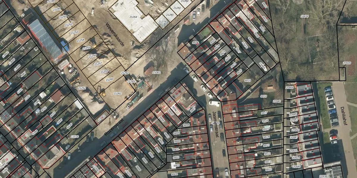 Het perceel waarop Rozenstraat 54 staat heeft een oppervlakte van 185 m². Dit is een middelgroot perceel. De perceeloppervlakte wordt geregistreerd door het Kadaster. Gedetailleerde informatie over de maten van dit perceel kunt u vinden in het rapport Kadastrale kaart met maatvoering van Rozenstraat 54.