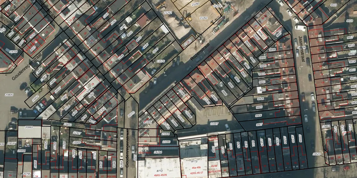 Het perceel waarop Rozenstraat 80 staat heeft een oppervlakte van 57 m². Dit is een klein perceel. De perceeloppervlakte wordt geregistreerd door het Kadaster. Gedetailleerde informatie over de maten van dit perceel kunt u vinden in het rapport Kadastrale kaart met maatvoering van Rozenstraat 80.