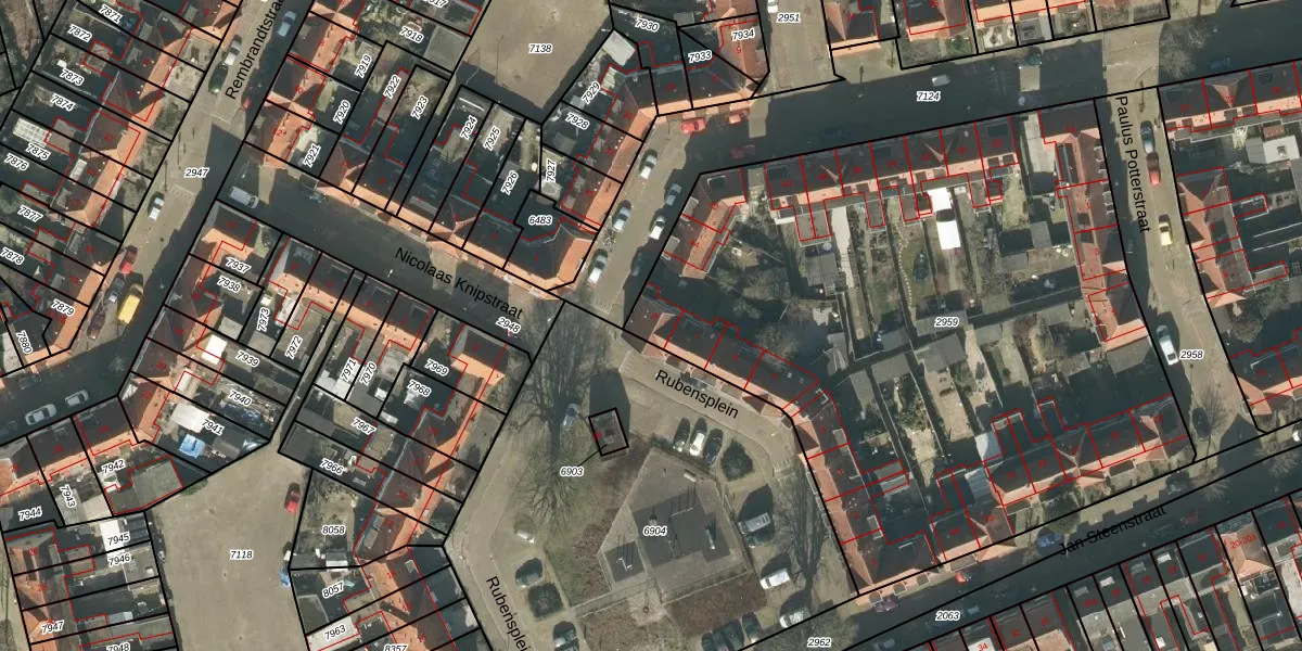Het perceel waarop Rubensplein 8 staat heeft een oppervlakte van 4040 m². Dit is een zeer groot perceel. De perceeloppervlakte wordt geregistreerd door het Kadaster. Gedetailleerde informatie over de maten van dit perceel kunt u vinden in het rapport Kadastrale kaart met maatvoering van Rubensplein 8.