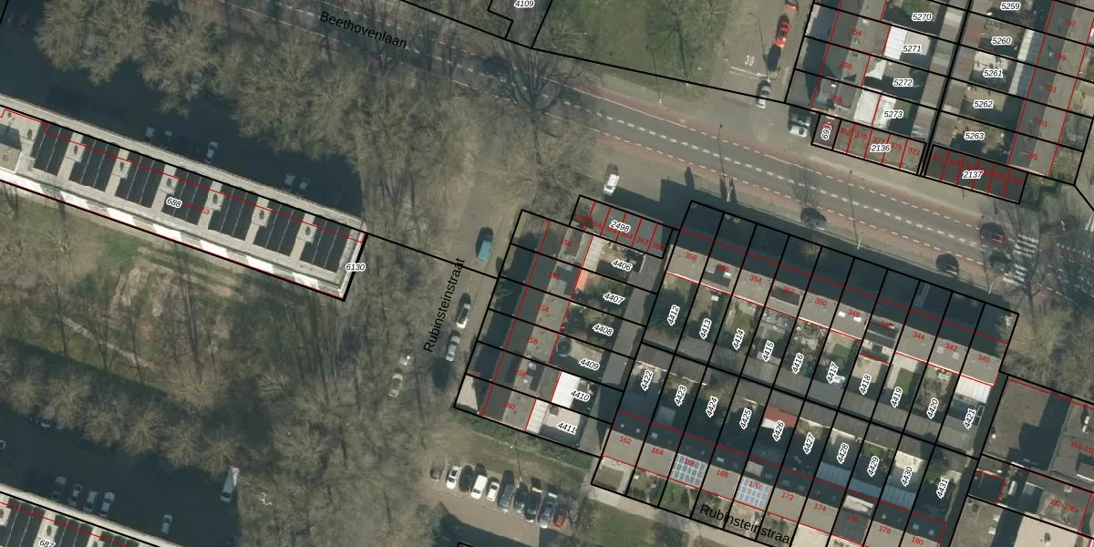 Rubinsteinstraat 152 is gelegen op kadastraal perceel TBG01S4407. Deze kadastrale aanduiding is uniek en wordt gebruikt door het Kadaster om eigendomsrechten en andere zakelijke rechten vast te leggen. Het perceel maakt onderdeel uit van de kadastrale gemeente Tilburg.