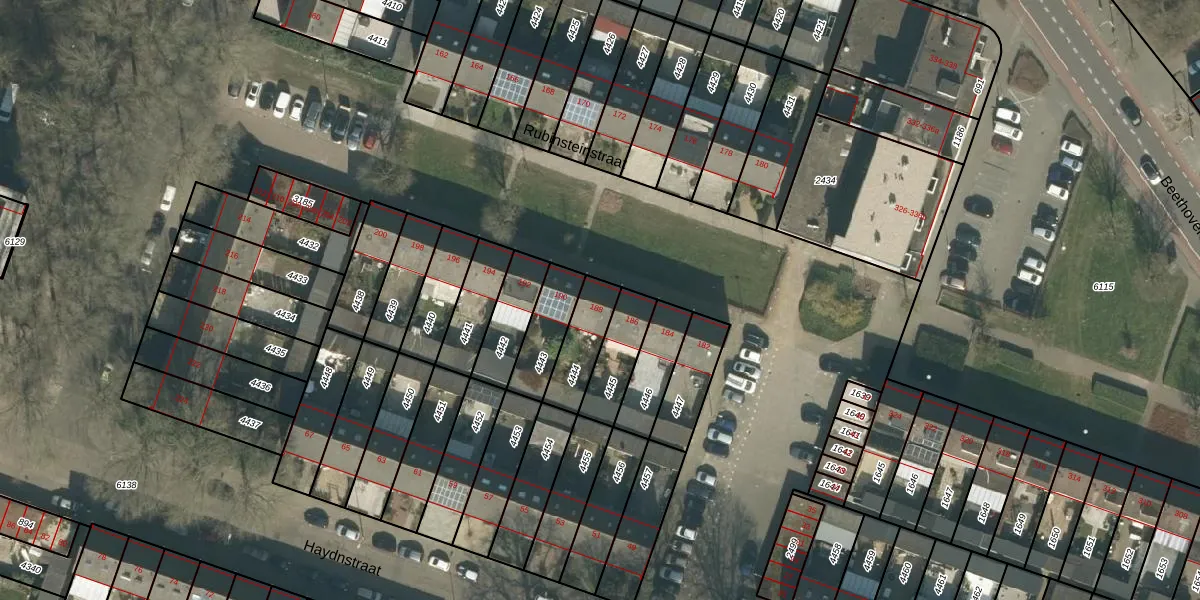 Rubinsteinstraat 188 is gelegen op kadastraal perceel TBG01S4444. Deze kadastrale aanduiding is uniek en wordt gebruikt door het Kadaster om eigendomsrechten en andere zakelijke rechten vast te leggen. Het perceel maakt onderdeel uit van de kadastrale gemeente Tilburg.
